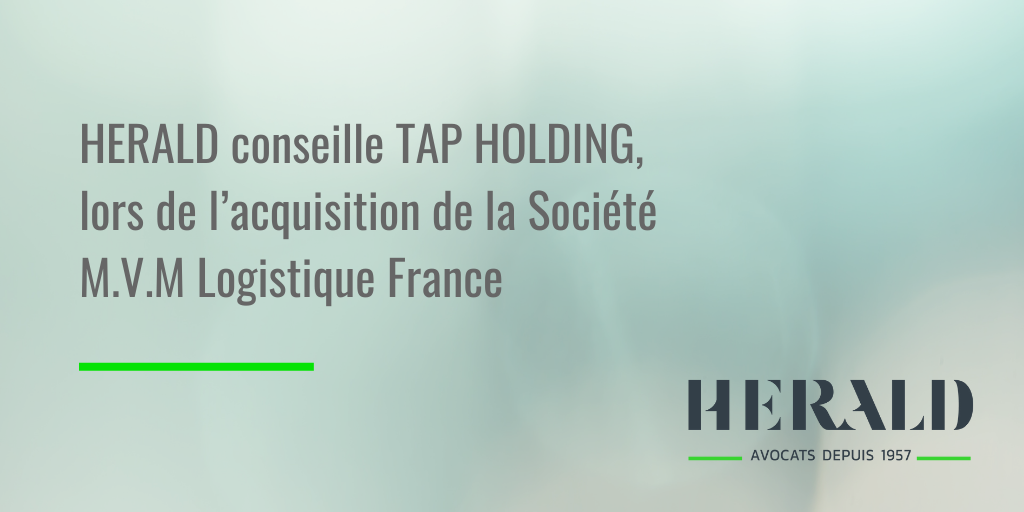 L'équipe Procédure Collective d'HERALD, dirigée par Fabrice Dalat, a conseillé TAP HOLDING, à l’occasion de l’acquisition de la Société M.V.M Logistique France, acteur de la Logistique, Emballage et Caisserie sur mesure. Read More