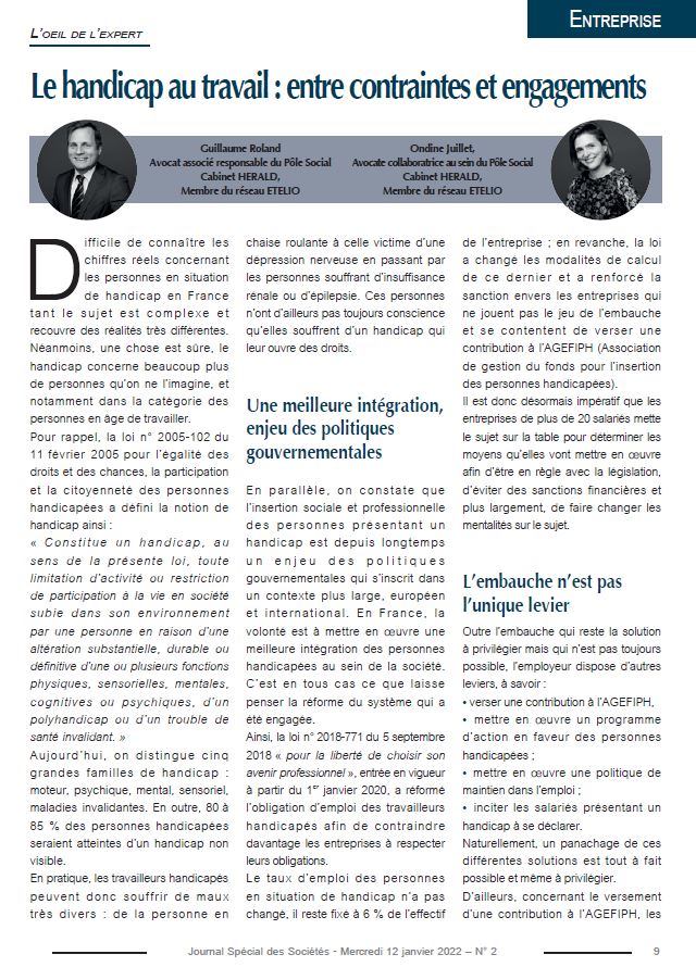 Tribune de Guillaume Roland, associé, et Ondine Juillet, paru dans le Journal Spécial des Sociétés du 12 janvier 2022.